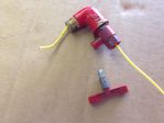 I suspect that the coolant has been a bit rich and has coagulated in the cooling passages. This is not unusual and all you need to do is use a piece of soft electrical wire (#12 or 14) and after you have removed the T, you can jiggle the wire through the valve and elbow into the the cooling passages which should cause the coolant to run out. I have attached a photo illustrating this.
